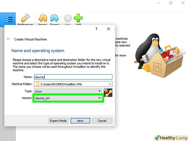 Виберіть "Ubuntu «в меню»версія". у цьому меню опція " Ubuntu «повинна відобразиться за замовчуванням, коли ви виберете» Linux «в меню» Тип«; в іншому випадку відкрийте меню» версія «і натисніть»Ubuntu (64-bit)".