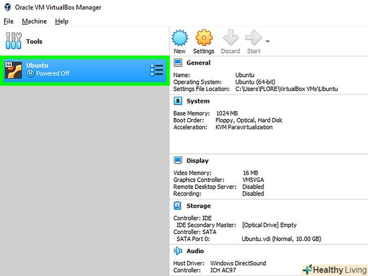 Двічі клацніть по імені створеної віртуальної машини. воно знаходиться в лівій частині вікна VirtualBox. Відкриється меню.