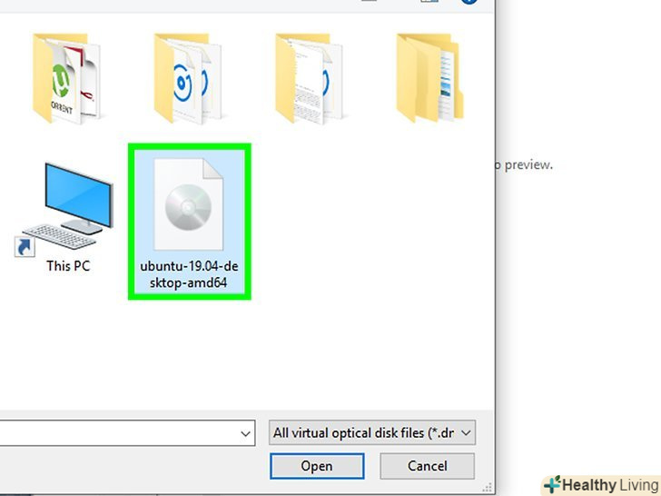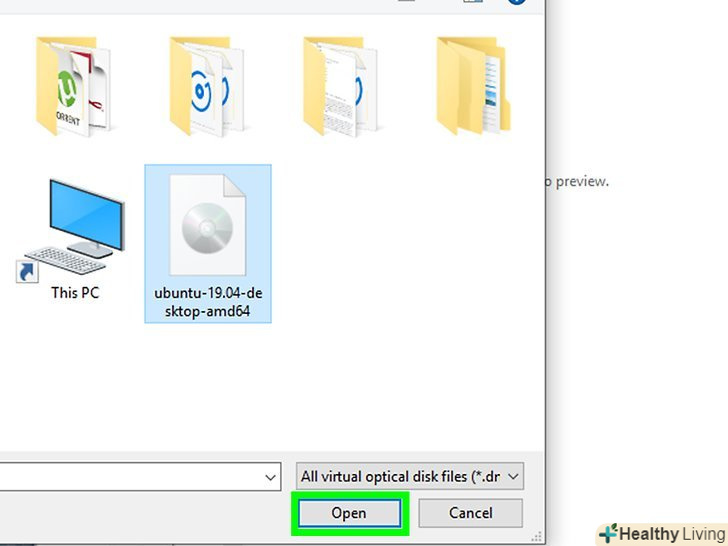 НатиснітьВідкрити.ця кнопка знаходиться в нижньому правому куті вікна. ISO-файл відкриється в VirtualBox.