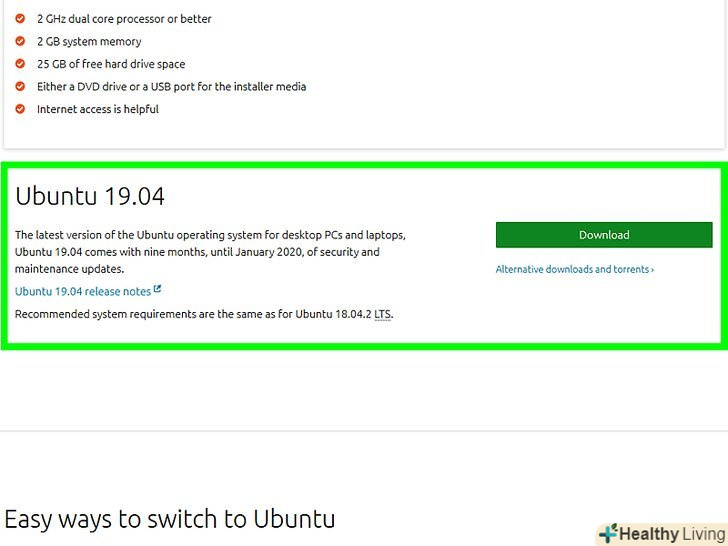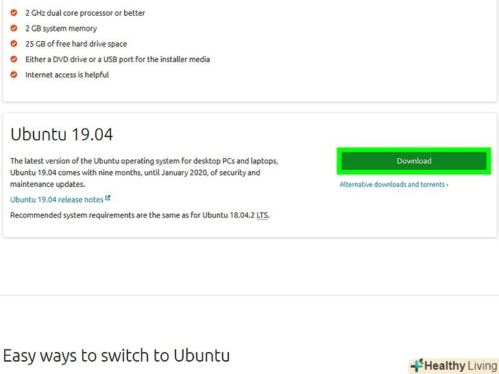 Відкрийте веб-сайт Ubuntu. перейдіть на сторінку https://www.ubuntu.com/download/desktop у веб-браузері комп'ютера. Тут можна завантажити образ диска (ISO-файл) Ubuntu.
