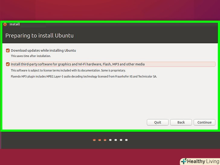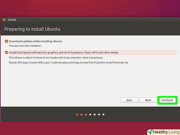 Встановіть прапорці у обох опцій у вікні "Підготовка до установки Ubuntu".так ви встановите повну версію Ubuntu.
