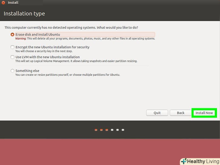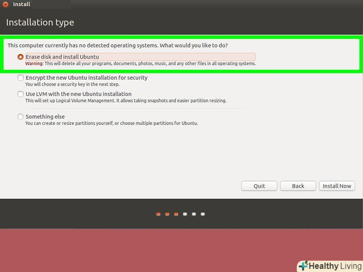 Встановіть прапорець біля опції " стерти диск і встановити Ubuntu». не хвилюйтеся-інформація, яка зберігається на жорсткому диску комп'ютера, не постраждає.