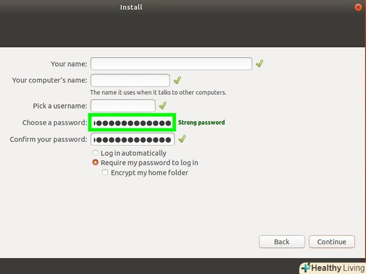 Створіть пароль.введіть пароль у текстовому полі "Пароль«, а потім ще раз введіть його в текстовому полі»підтвердити пароль".