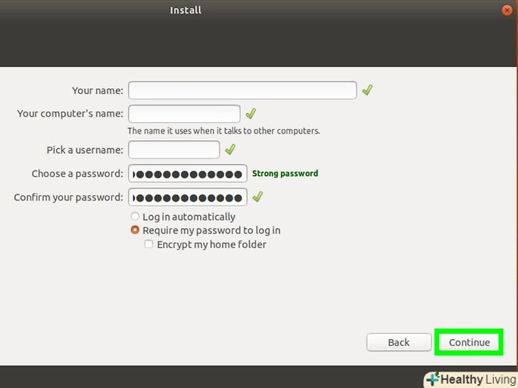 Клацніть поПродовжити. ця кнопка знаходиться в нижній частині сторінки.- Якщо потрібно, змініть параметри входу в систему під текстовим полем "підтвердити пароль".
