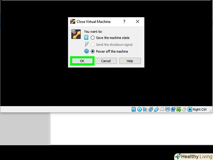 Перезапустіть віртуальну машину. коли на екрані з'явиться кнопка "перезапустити зараз«, зробіть наступне: Натисніть» вихід «у верхньому правому (Windows) або у верхньому лівому (Мас) кутку вікна, встановіть прапорець у» вимкнути машину«, натисніть» ОК", а потім двічі клацніть по імені віртуальної машини.