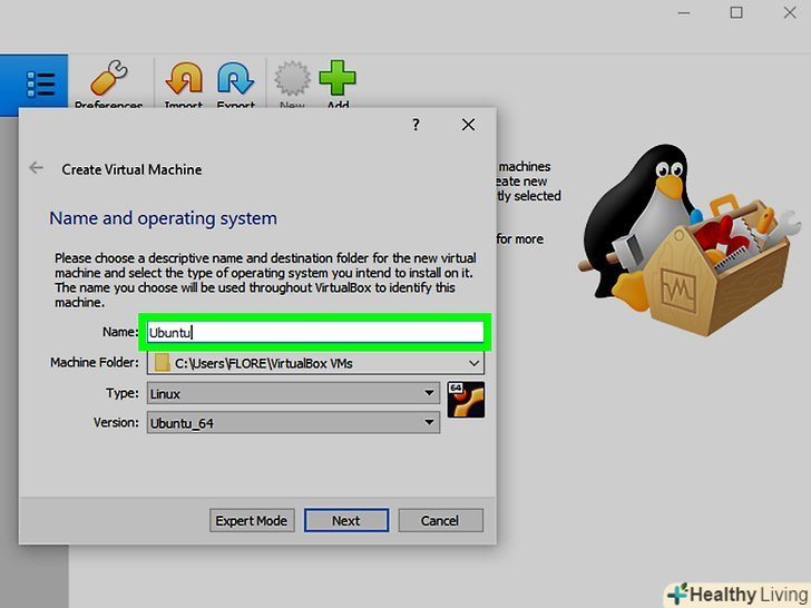 Введіть ім'я віртуальної машини. Введіть будь-яке ім'я (наприклад, Ubuntu) у текстовому полі «Ім'я», яке знаходиться у верхній частині спливаючого меню.