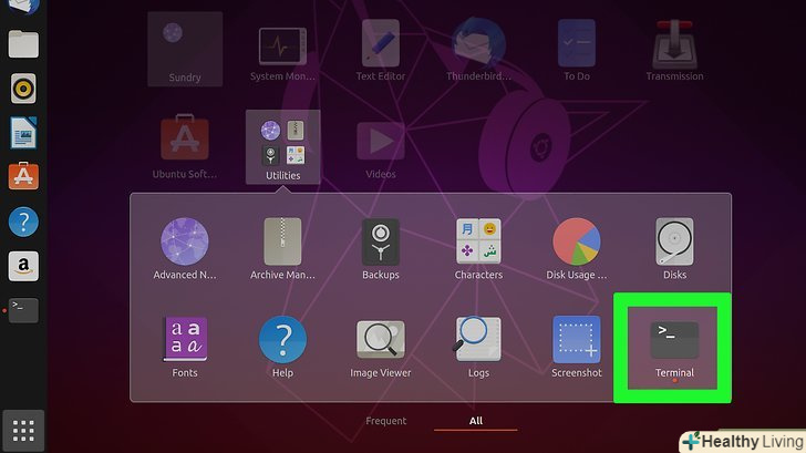 Відкрийте термінал.відкрийте меню "програми«, прокрутіть вниз і клацніть по чорно-білому значку у опції»Термінал".- Також можна натиснутиAlt+Ctrl+t, щоб відкрити термінал.