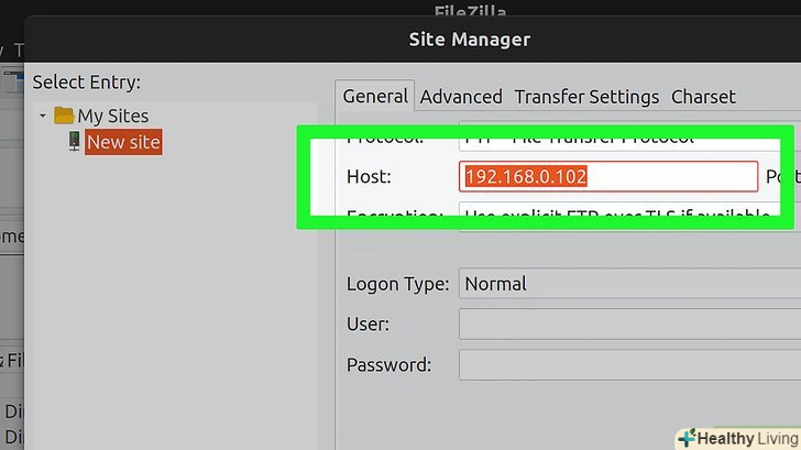 - Введіть адресу свого сервера. У текстовому полі «Хост:» введіть адресу (або IP-адресу) FTP-сервера, до якого ви хочете підключитися.[5]