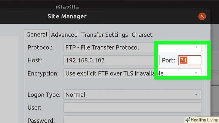 - Введіть номер переадресованого порту. Введіть21 у текстовому полі «Порт:».