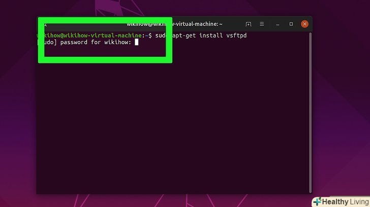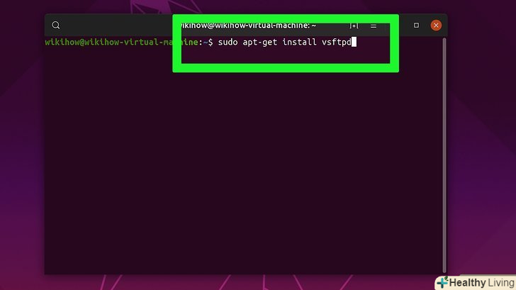 Введіть команду установки VSFTPD (FTP-сервера). Введіть sudo apt-get install vsftpd в терміналі, а потім натисніть ↵ Enter.