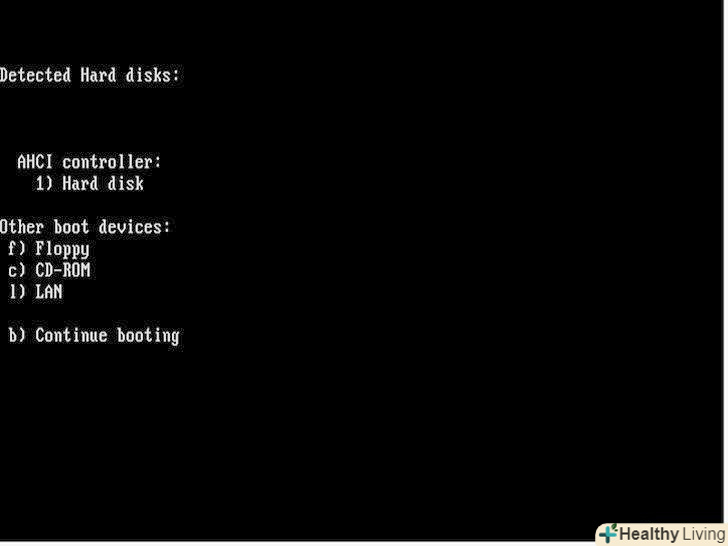 Завантажте комп'ютер з інсталяційного диска.для цього на більшості комп'ютерів потрібно натиснути будь-яку клавішу на клавіатурі.- Якщо комп'ютер не налаштований на завантаження з компакт-диска, під час перезавантаження натисніть «параметри завантаження» або виберіть опцію «Windows DVD» в меню GRUB.
