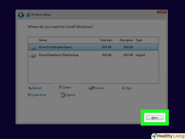 Клацніть поДалі.це означає, що ви хочете встановити Windows на вибраний диск.