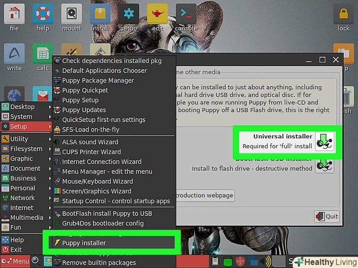 Натисніть "Menu» - «Setup» - "Puppy universal installer".