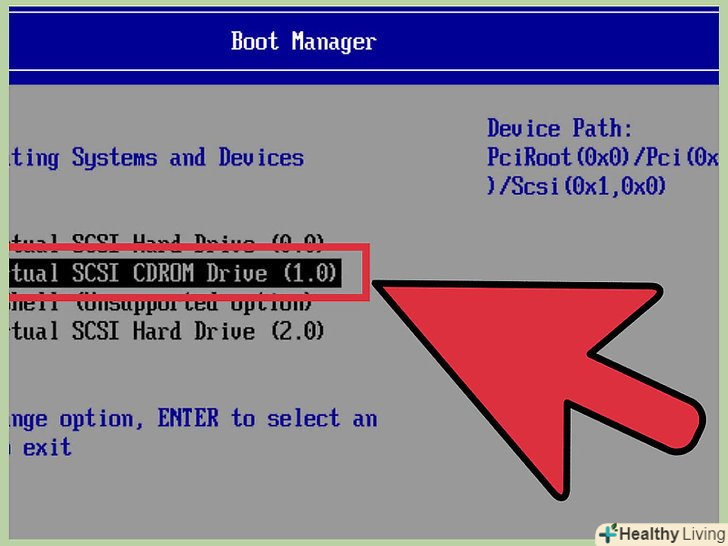 Запустіть процес установки з неробочого комп'ютера.якщо на вашому комп'ютері не завантажується OS X, ви можете почати процес установки, завантажившись з DVD. Перезавантажте комп'ютер, утримуючи клавішу Option. Запуститься Менеджер завантаження, в якому будуть вказані всі можливі джерела завантаження.- Як тільки запуститься Менеджер завантаження, вставте інсталяційний DVD-диск OS X. через деякий час DVD з'явиться в списку джерел завантаження. Виберіть його, щоб перезавантажити комп'ютер і завантажитися з DVD.