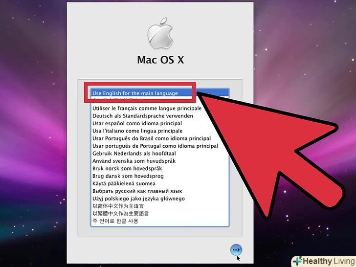 Виберіть мову і почніть процес установки.після того, як ваш комп'ютер перезавантажиться, почнеться процес установки. Вам буде запропоновано вибрати мову, а потім з'явиться вікно привітання. Натисніть на кнопку Continue, щоб почати установку.[2]