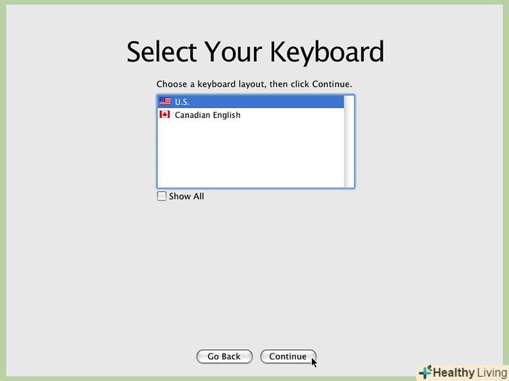 Налаштуйте клавіатуру.перше, що Вам буде запропоновано зробити після перезавантаження комп'ютера - це налаштувати клавіатуру. Щоб виявити і налаштувати клавіатуру, дотримуйтесь інструкцій на екрані.