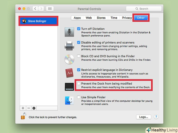 - Приберіть прапорець у опції "заборонити вносити зміни в Док" або»дозволити цьому Користувачеві вносити зміни в Док "