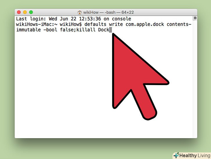 - Скопіюйте та вставте в термінал наступну команду:Defaults write com.apple.dock contents-immutable -bool false;killall Dock