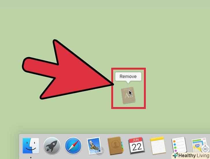 Перетягніть значок з Дока. Натисніть і Потримайте значок програми в доці. Перетягніть значок подалі від Дока (як мінімум на третю частину від розміру екрану).