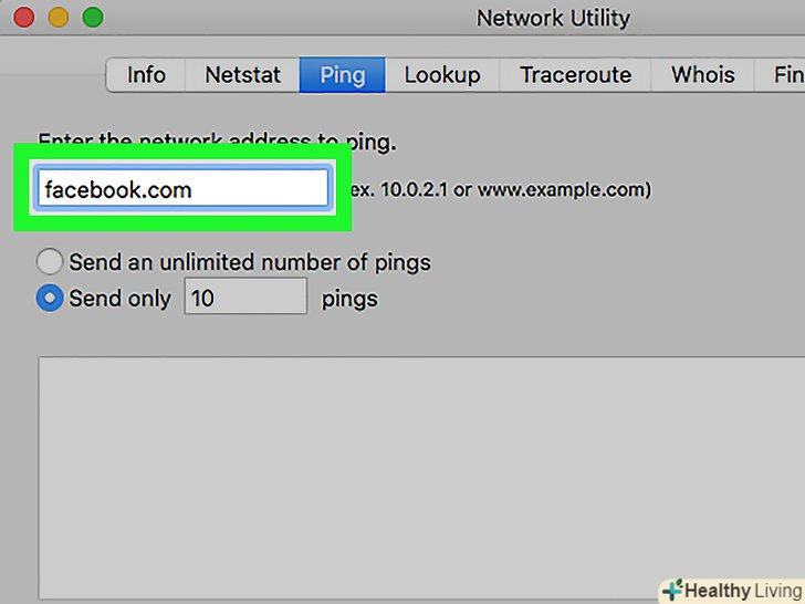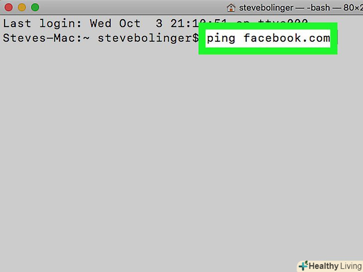 - Щоб пропінгувати сайт (наприклад, Facebook), введіть його URL-адресу наступним чином: website.com (наприклад,facebook.com).