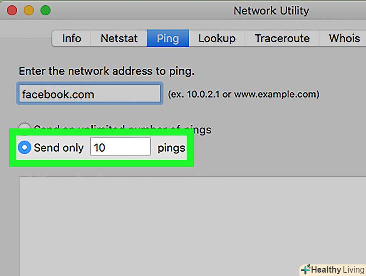 Виберіть певну кількість запитів (якщо потрібно).за замовчуванням комп'ютер буде відправляти запити, поки ви не закриєте вікно мережевої утиліти. Щоб обмежити кількість запитів:- Встановіть прапорець біля «передати тільки _ _ _ запитів»;