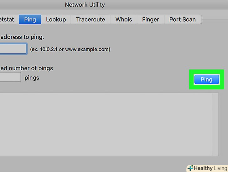 Клацніть поPing. це Синя кнопка в правій частині сторінки. Комп'ютер приступить до пінг адреси.