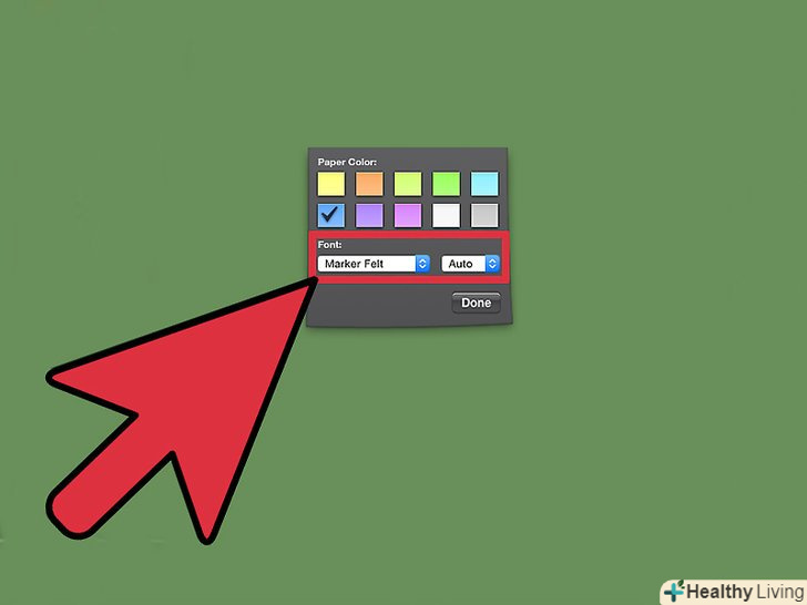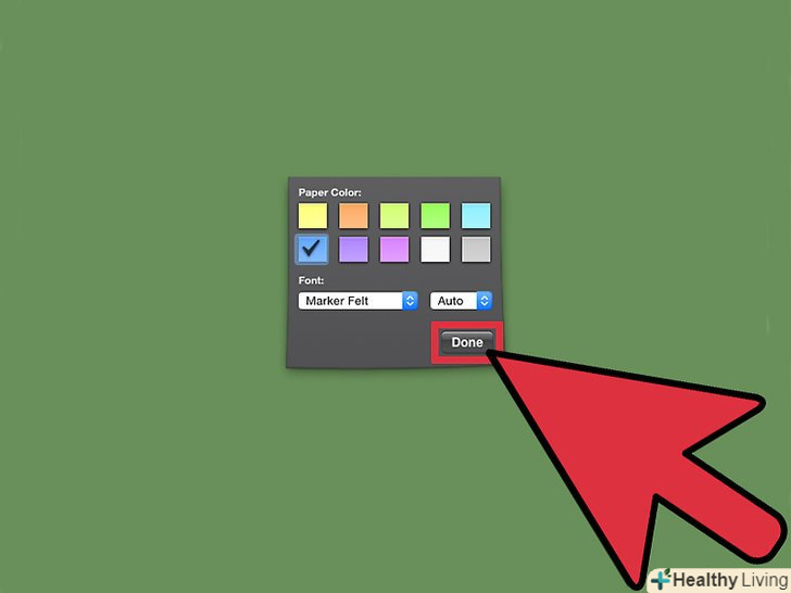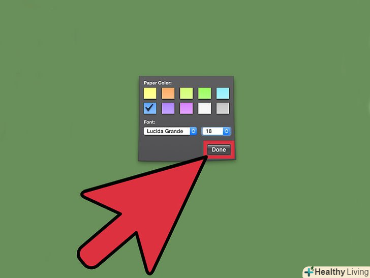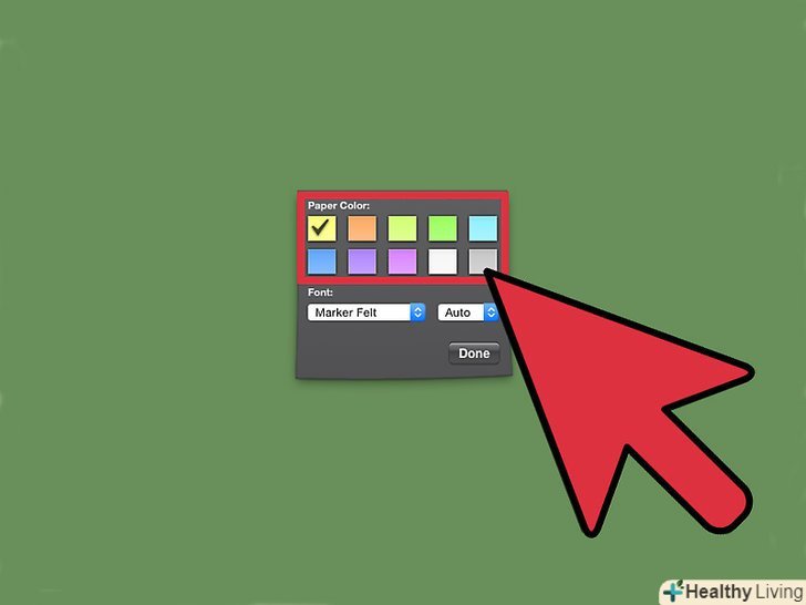 Натисніть кнопку "i", яка знаходиться в правому нижньому кутку замітки.- При натисканні кнопки, замітка відобразить вам колірні параметри, які можна вибрати.