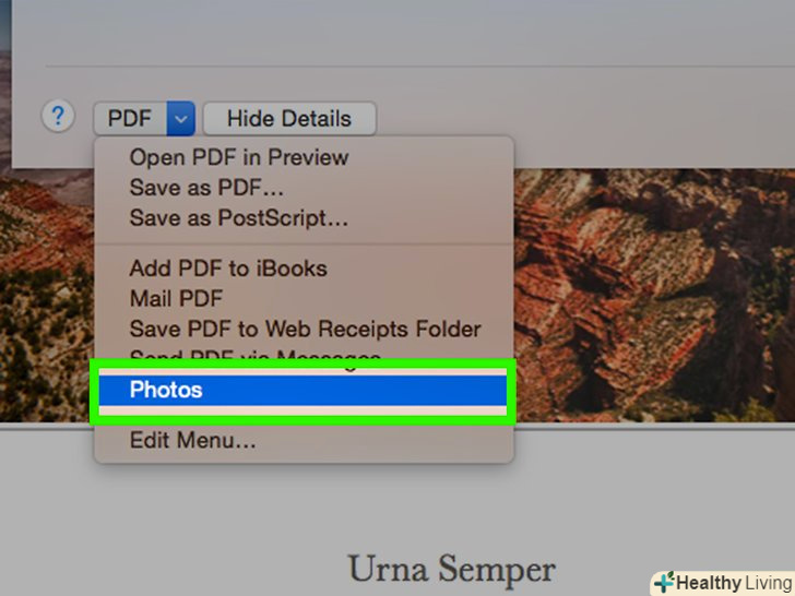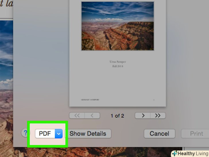 Натисніть на вкладку "PDF «з випадаючим списком опцій в лівому нижньому кутку вікна»Print".