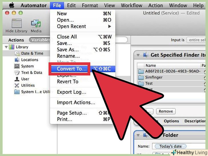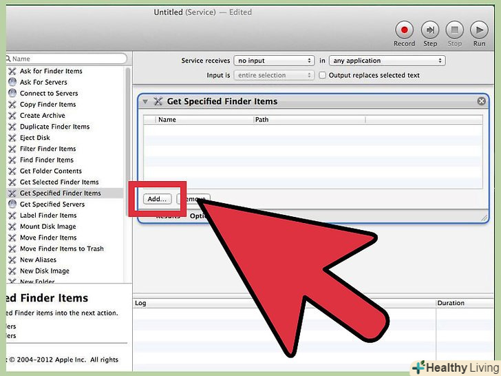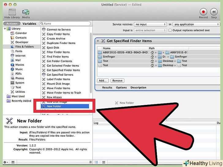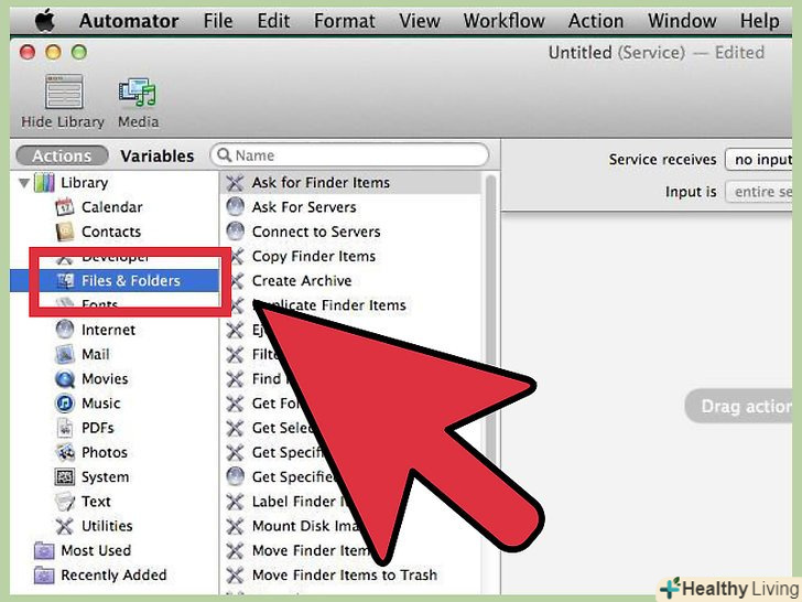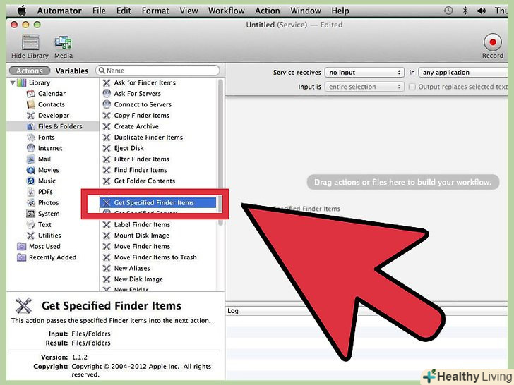 Перетягніть "отримати вказані об'єкти Finder" у ваш потік дій.