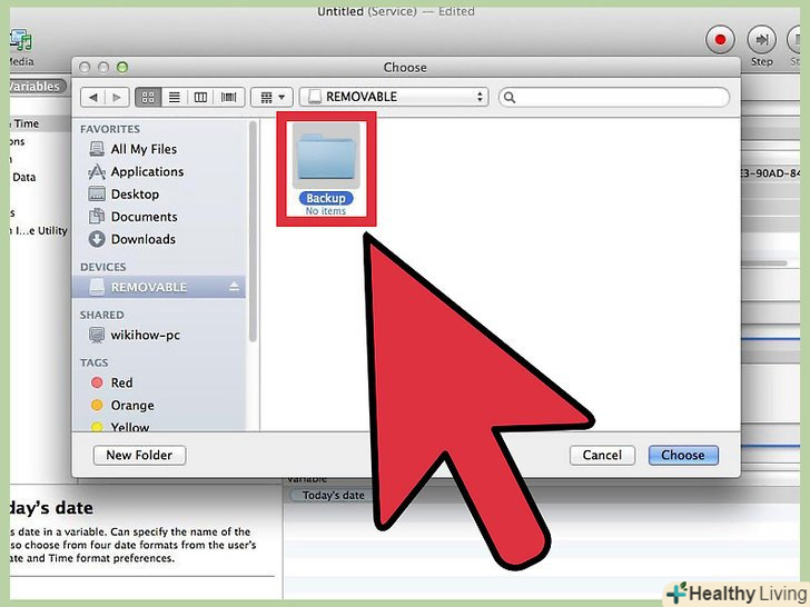 Знайдіть зовнішній жорсткий диск і виберіть або створіть папку для резервного копіювання.