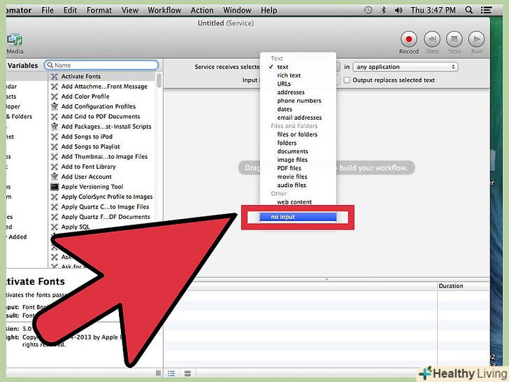 Натисніть на меню, що випадає, щоб воно виглядало наступним чином. Служба отримує lt;немає вхідних данихgt; в будь-якій програмі.