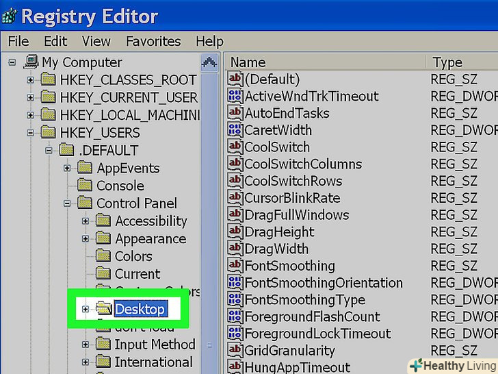 Перейдіть до розділу HKEY_USERS\.DEFAULT\Control Panel\Desktop.