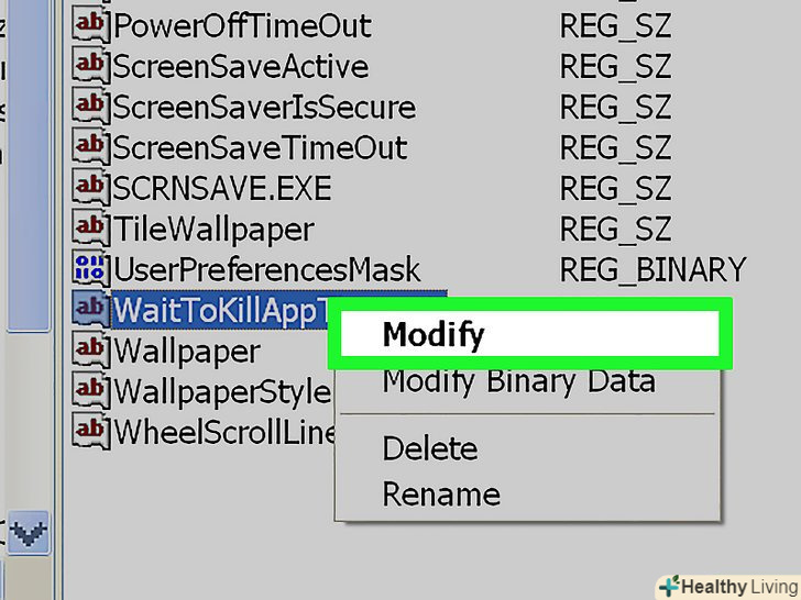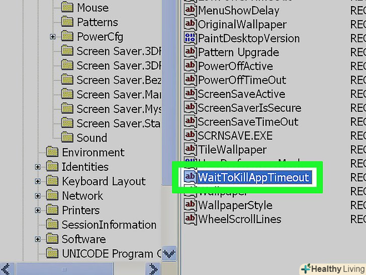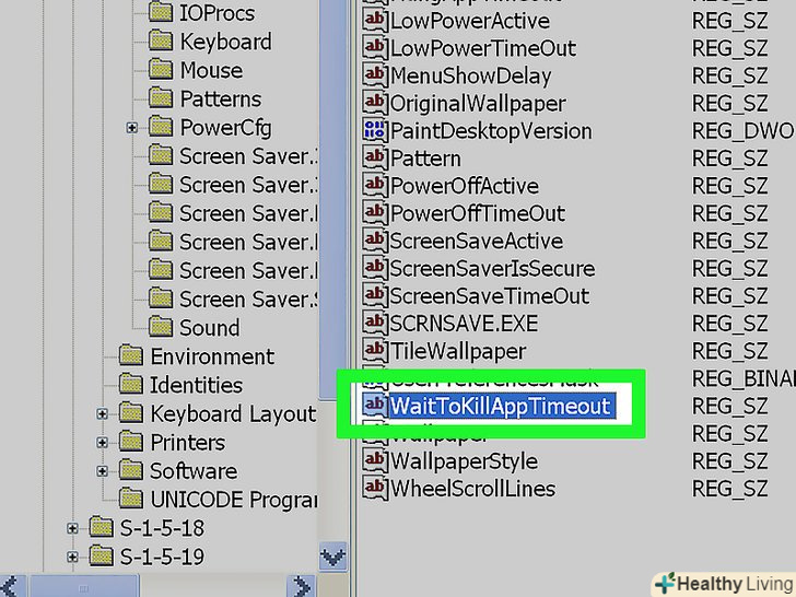 У таблиці праворуч знайдіть ключ "WaitToKillAppTimeout".