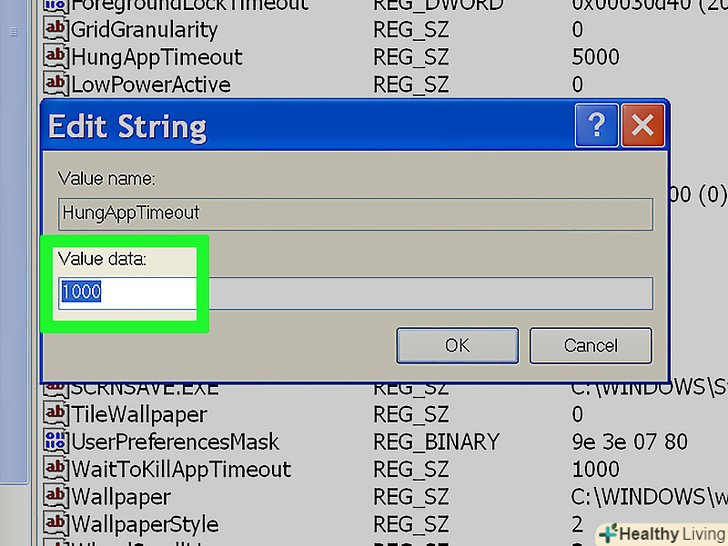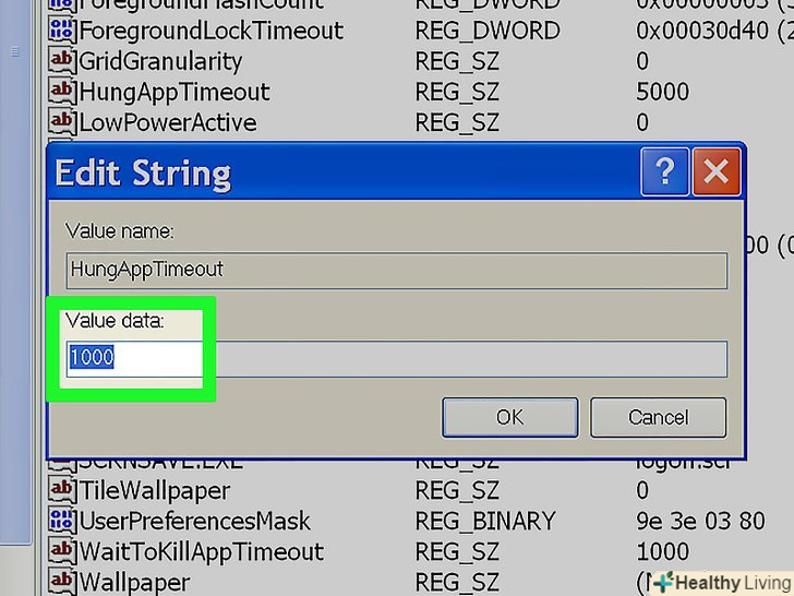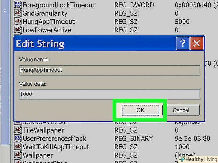 Значення ключа HungAppTimeout теж замініть на 1000.