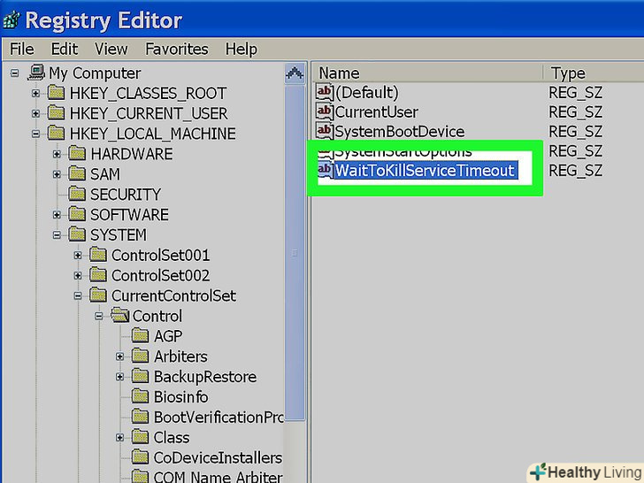 Знайдіть ключ "WaitToKillServiceTimeout" у таблиці праворуч.