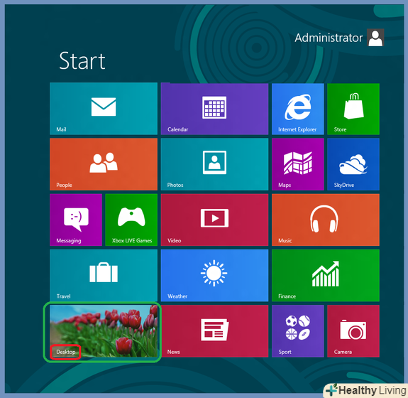 Натисніть плитку "робочий стіл", щоб переключитися в режим робочого столу.на початковому екрані повинна бути плитка, яка включає режим традиційного робочого столу. Для більшості завдань такий вид не потрібно, але завдяки класичному вигляду робочого столу ви зможете швидше звикнути до нової Windows 8.