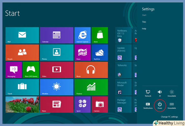 Скористайтеся новою кнопкою "Пуск".Переключившись в режим робочого столу, ви звернете увагу на те, що традиційна кнопка «Пуск» трохи змінилася. У початковій версії Windows 8 такої кнопки взагалі не було, але з оновленням 8.1 було вирішено повернути «Пуск». Меню, яке викликає дана кнопка, представлено в стилі "Metro «(сучасне меню» Пуск") і не схоже на початковий варіант. Вибір кнопки "Пуск «в меню Експрес-кнопок також викликає меню»Пуск".- Початковий екран фактично являє собою розширене і більш функціональне меню "Пуск".