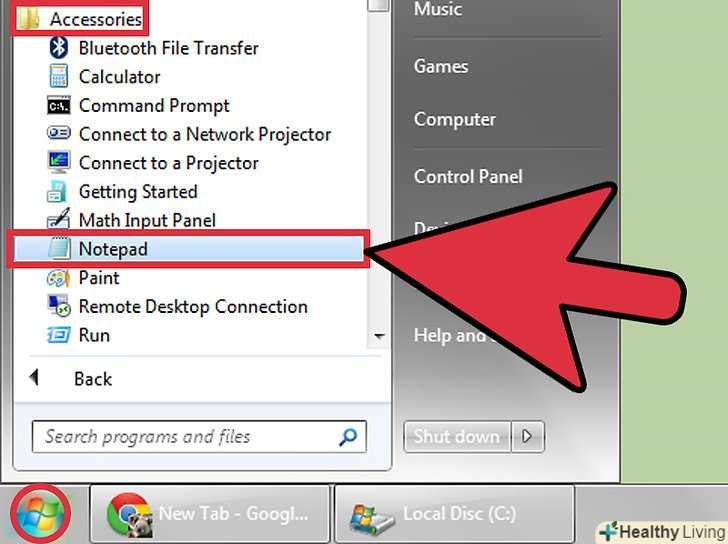 Відкрийте Блокнот (Start gt; All Programs gt; Accessories gt; Notepad)