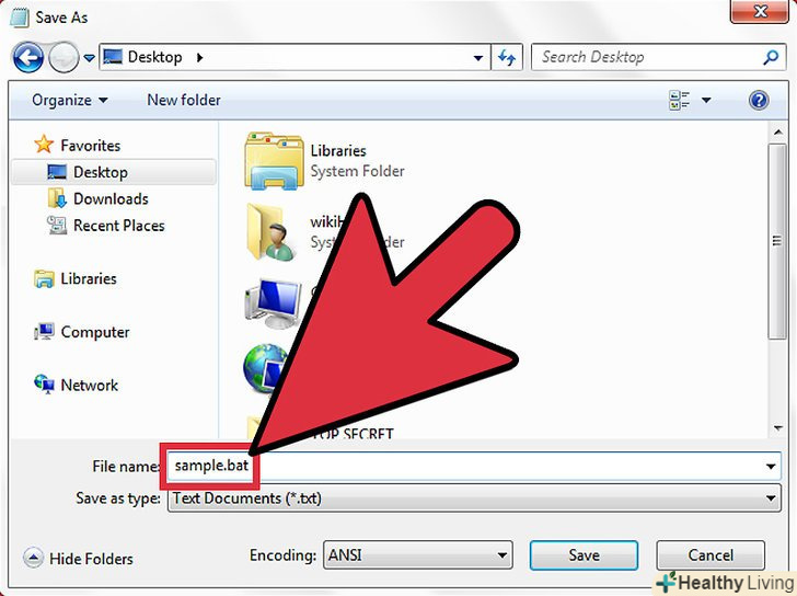 Збережіть як anything.bat (переконайтеся, що тип файлу поставлений на all files).