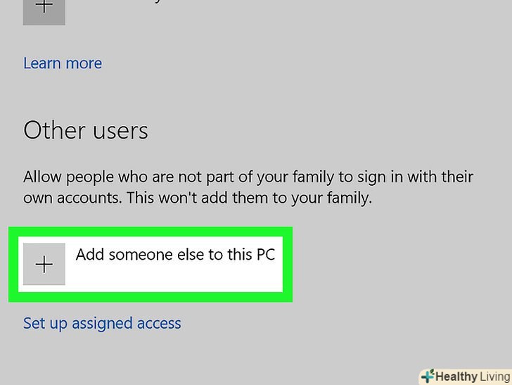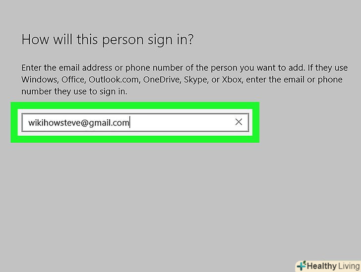 - Скористайтеся цим методом, щоб додати користувача, у якого немає облікового запису Microsoft (наприклад, так можна створити аккаунт для дитини).[1]