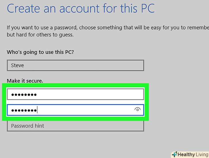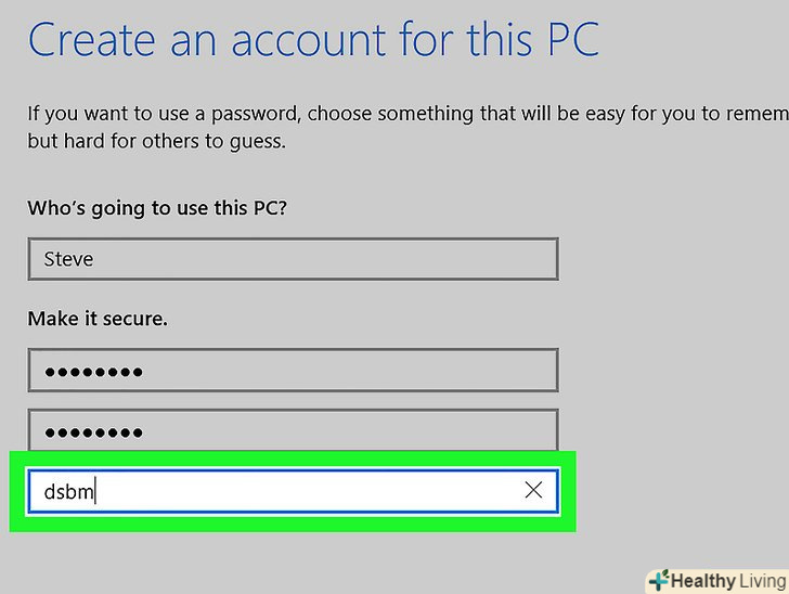Введіть підказку для пароля.введіть щось, що дозволить користувачеві згадати пароль.