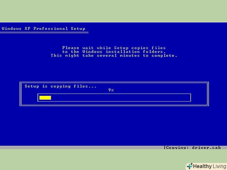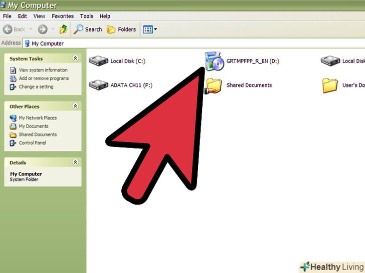 Вставте інсталяційний диск з Windows XP.щоб відформатувати диск C: , потрібно видалити поточну версію Windows. Для цього вам знадобиться інсталяційний диск з Windows XP або з іншою версією Windows.- Якщо вам не вдається знайти інсталяційний диск,скачайте образ (ISO-файл) інсталяційного диска Windows і запишіть його на порожній DVD-диск. Це законно, якщо ви вже купували Windows.