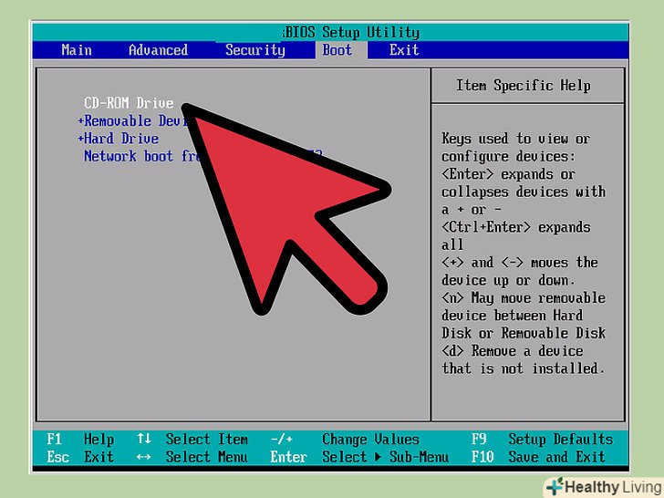Налаштуйте комп'ютер на завантаження з DVD-диска, а не з жорсткого диска.для цього в BIOS змініть порядок завантаження (основний завантажувальний пристрій). Щоб увійти в BIOS, потрібно кілька разів натиснути певну клавішу під час завантаження комп'ютера.- Як правило, потрібно натискати на клавішу F2, F10 або Delete.