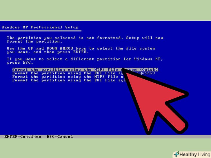 Відформатуйте розділ. коли ви видалите розділ з Windows, відформатуйте нерозмічений простір. Це відбудеться автоматично, коли ви будете встановлювати нову операційну систему. Щоб вручну відформатувати нерозмічений простір, виберіть його і натисніть клавішу "C".- Вам потрібно вказати розмір розділу, потрібну букву диска і формат файлової системи.