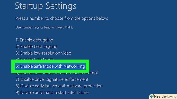 Виберіть опцію "Безпечний режим із завантаженням мережевих драйверів". натисніть клавішу з цифрою, яка знаходиться зліва від зазначеної опції (зазвичай це клавіша з цифрою «5»). Комп'ютер запуститься в безпечному режимі, після чого можна приступити до очищення реєстру.