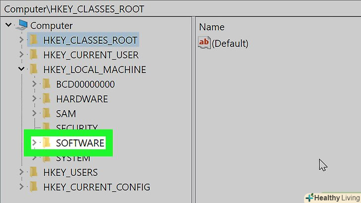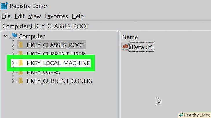Відкрийте папку "HKEY_LOCAL_MACHINE". Для цього клацніть по значкузліва від папки, яка знаходиться у верхній лівій частині вікна.