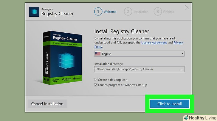 Встановіть програму Registry Cleaner. вона просканує Реєстр, знайде пошкоджені або непотрібні записи, визначить, які з них можна безпечно видалити, а потім видалить їх. Щоб встановити цю програму, виконайте наступні дії:- Перейдіть на сторінкуhttp://www.auslogics.com/ru/software/registry-cleaner/ у веб-браузері комп'ютера.