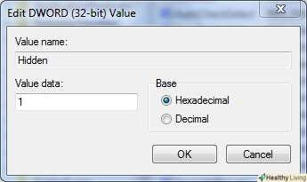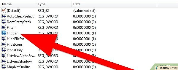 Знайдіть "Hidden".- Клацніть правою клавішею по Hidden і змініть значення на 1.