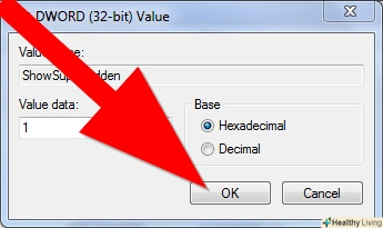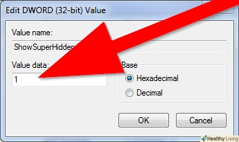 Клацніть правою клавішею по "ShowSuperHidden" і натисніть Змінити.- Введіть 1.