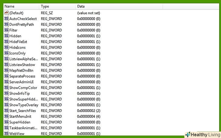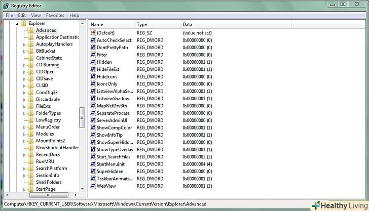 Перейдіть до: HKEY_CURRENT_USER \ Software \ Microsoft \ Windows \ CurrentVersion \ Explorer \ Advanced.